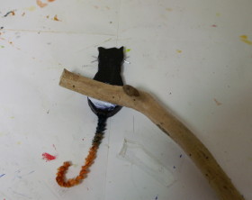 Α, η ουρά είναι ένα κομμάτι σύρμα στο οποίο τύλιξα ένα νήμα και το οποίο έχωσα μέσα στον πηλό όταν ήταν ακόμα υγρός και τον άφησα να στεγνώσει με αυτό μέσα.